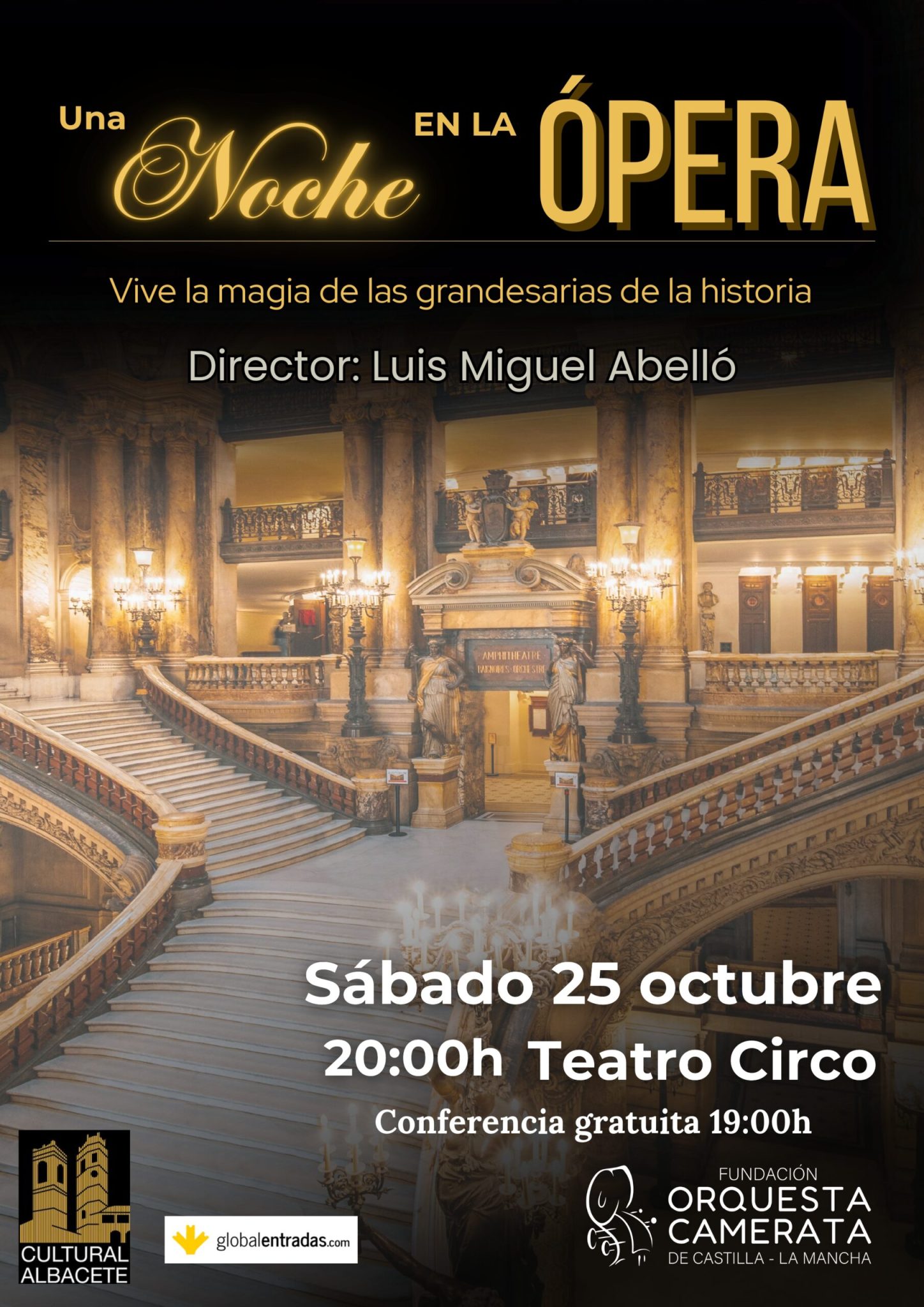 Albacete 1er concierto 1974 Valencia 1975 Teruel 1978 Huesca 1979 Barcelona 1979 Castellón 1982 Vigo 1984 Torrevieja 1987 1er Premio Albacete 15º aniv. 1989 San Vicente de la Barquera 1989 Vienne (Francia) 1990 Frankfürt (Alemania) 1991 Murcia 1992 Rojales 1993 Jerusalén (Israel) 1994 Griñón (Madrid) 1997 Albacete 25º aniv. 1999 Santander 2000 Albacete 2001 Guadalajara 2003 Albacete 30º aniv. 2004 Ávila 2005 Granada 2006 Florencia (Italia) 2007 Ciudadela (Menorca) 2009 Valladolid 2009 Albacete 35º aniv. 2009 Soria 2010 Ciudad Real 2011 Toledo 2013 Portalegre (Portugal) 2013 Santiago de Compostela 2014 Albacete 40º aniv. 2014 Villena (Alicante) 2015 Logroño 2016 Albacete 2016 Bilbao 2018 45ºaniv.-2019 Conc.1000 Albacete 2020 XXIX Edición Priego (Cuenca) 2021 Albacete 2022 Albacete Estreno del Canto a Castilla La Mancha 2022 Chinchilla – 2022 El Mesías de Haëndel Albacete – 2023 Requiem de Mozart Albacete – 2023 Navidad Cultural Albacete – 2024 Misa Albasitensis Avilés – 2024 – XXXI Encuentro Coral de Habaneras de Avilés Madrigueras – 2024 – Gran Gala Lírica XXXII Edición Albacete – 2024 – 50 Aniversario Albacete – 2024 – Navidad Cultural XXXIII Edición Albacete – 2025 – Zarzuela La Rosa del Azafrán Albacete – 2025 – Ópera El Bonillo – 2025 Albacete – 2025 – Navidad